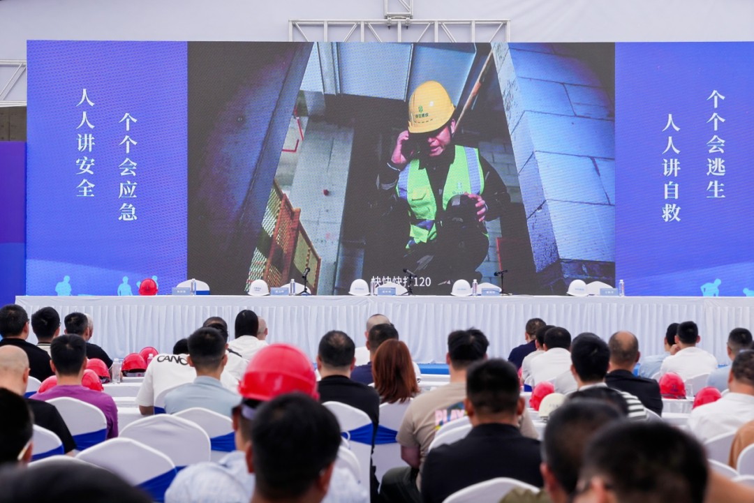 在觀摩過程中,與會者共同觀看了安全科普視頻和應(yīng)急演練視頻。公司參與制作了《消失的他》和《云端求生直播間》安全科普視頻,《云端求生直播間》以工地通過“不系安全帶直播炫技”的連環(huán)驚險劇情,深刻詮釋安全帶是高空作業(yè)者的生命防護(hù)線。《消失的他》以血淚交織的教訓(xùn)敲響警鐘:安全無僥幸,生命不重啟,唯有平安歸家,才是一切奮斗的終極意義。項目部編制的《預(yù)防抗臺風(fēng)應(yīng)急演練》視頻,檢驗應(yīng)急預(yù)案的科學(xué)性和實操性,確保在突發(fā)情況下能夠迅速響應(yīng)、有效應(yīng)對。