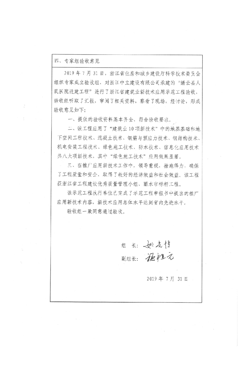 縉云縣人民醫(yī)院遷建工程榮獲 浙江省建筑業(yè)新技術(shù)應(yīng)用示范工程
